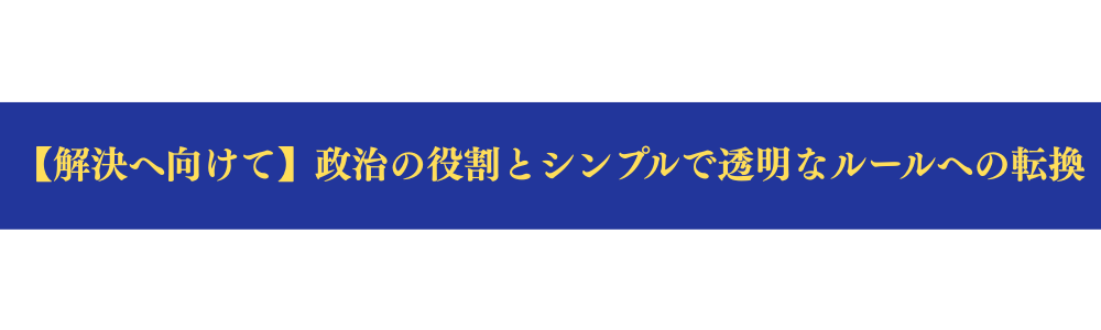 もちろん、市場原理にすべてを委ねることも危険です。格差固定や弱者排除を防ぐため、政治の役割は不可欠です。しかしその役割は、税制を複雑にして細かく調整することではありません。むしろ、税制はシンプルで透明であるほど、努力と成果が正当に評価され、政治的恣意や利権の温床を防ぐことができます。