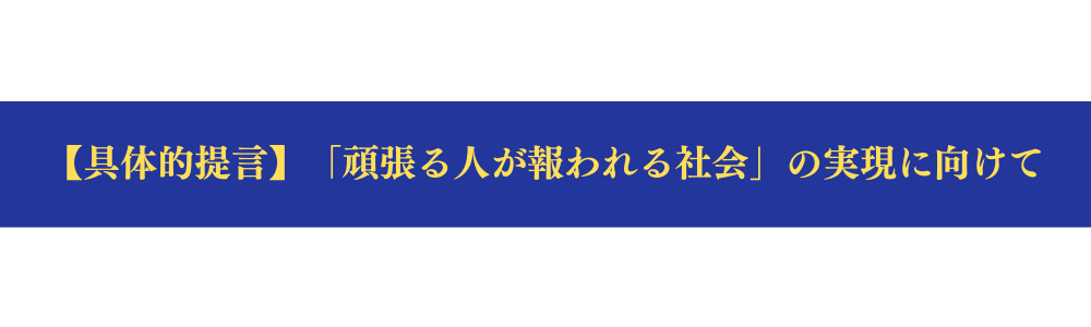 ③透明で持続可能な再分配:低所得者や子育て世帯への支援は、給付や税額控除で見える形で行い、政治的恣意を排除します。